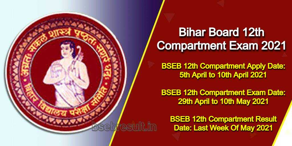 बिहार बोर्ड BSEB ने क्लास 10th और 12th कंपार्टमेंट एग्जाम 2021 के date की घोषणा कर दी है। इच्छुक छात्र जो एक या दो विषय में फेल हो चुके हैं, वे इस कंपार्टमेंट एग्जाम के लिए अपना रजिस्ट्रेशन करा सकते हैं। क्लास 12th के लिए रजिस्ट्रेशन 5 अप्रैल से शुरू हो चुका है और इसके लिए परीक्षाएं 29 अप्रैल से 10 मई के बीच आयोजित की जाएंगी। जबकि क्लास 10th के लिए कंपार्टमेंट एग्जाम का रजिस्ट्रेशन आज यानी 10 अप्रैल से शुरू हो चुका है, और 16 अप्रैल तक आप आवेदन कर पाएंगे। यदि आप इस एग्जाम के लिए आवेदन करना चाहते हैं तो आपको अपने स्कूल में आवेदन के लिए मिलना होगा और आपको अपने स्कूल के माध्यम से BSEB की ऑफिशियल वेबसाइट पर जाकर इस एग्जाम के लिए रजिस्ट्रेशन कराना होगा। BSEB की ऑफिशियल वेबसाइट है- http://biharboardonline.bihar.gov.in Registration Link