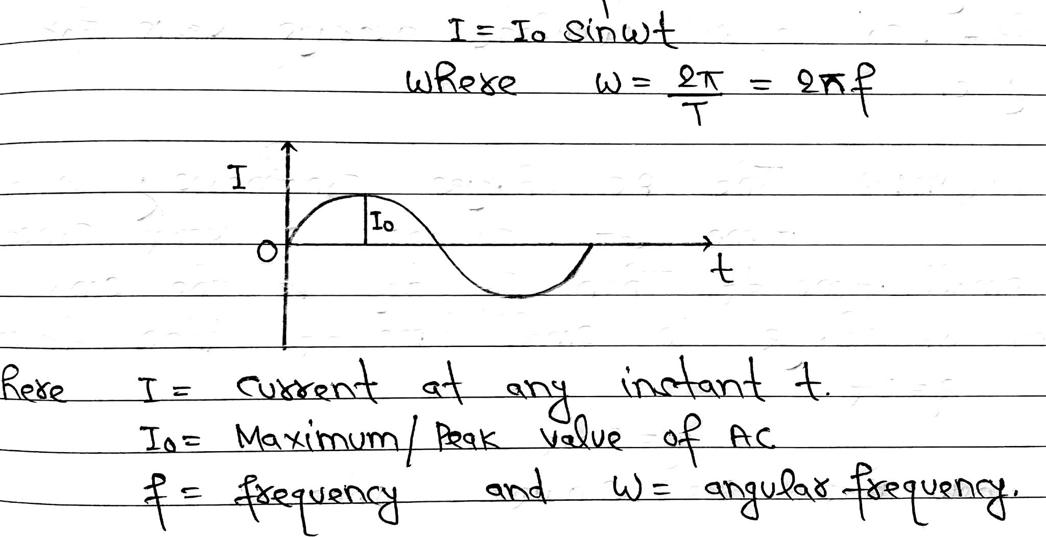 If the direction of current changes alternatively and its magnitude changes continuously with respect to time is called alternating current.