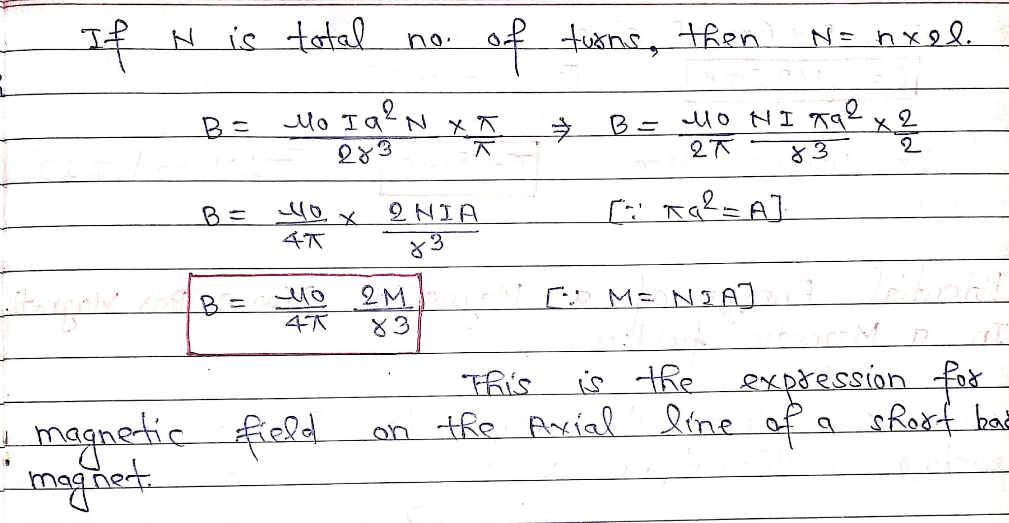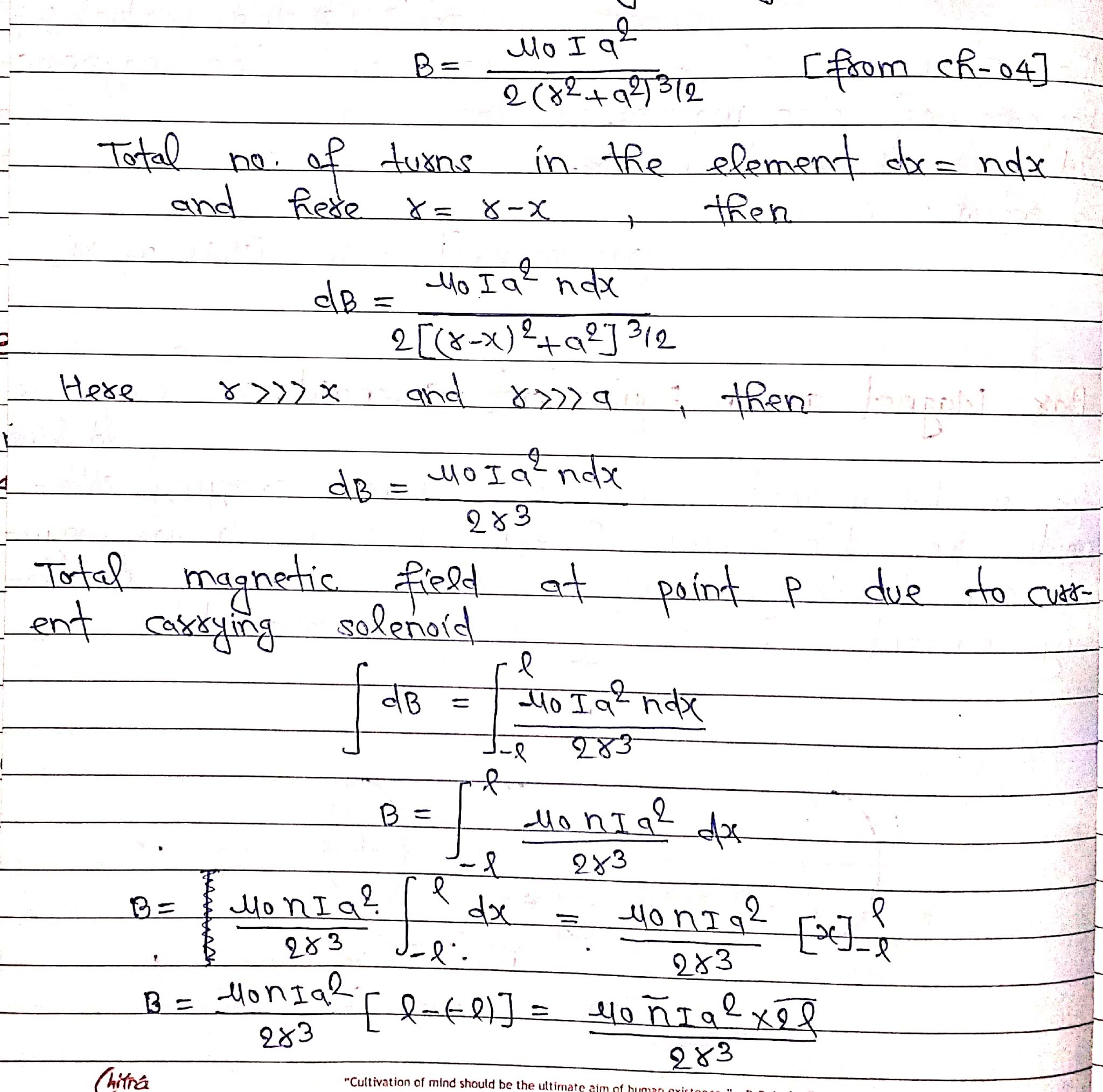 Let i be the current passing through a solenoid, a be the radius of the solenoid, 2l be the length of the solenoid and n be the number of turns per unit length of the solenoid.