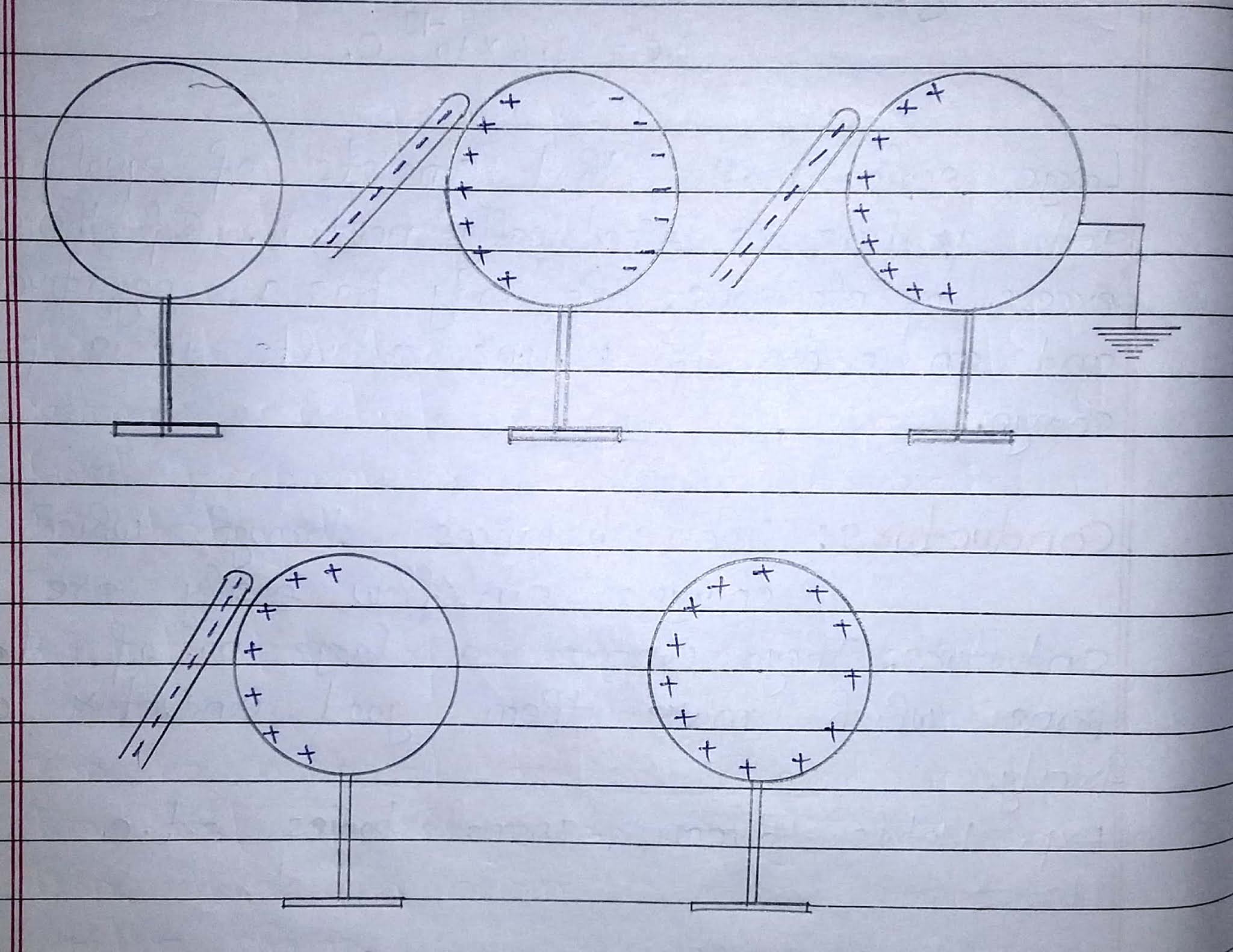 1. For charging an uncharged conducting sphere positively by induction, A negatively charged rod is brought close to it.