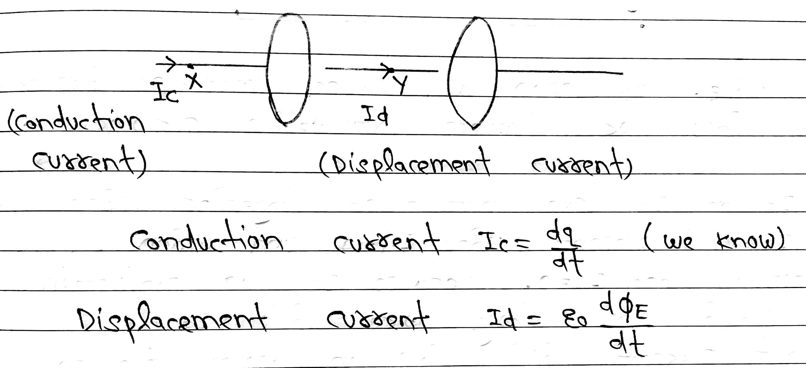 Displacement current is that current which comes into play in the region in which the electric field and the electric flux is changing with time.