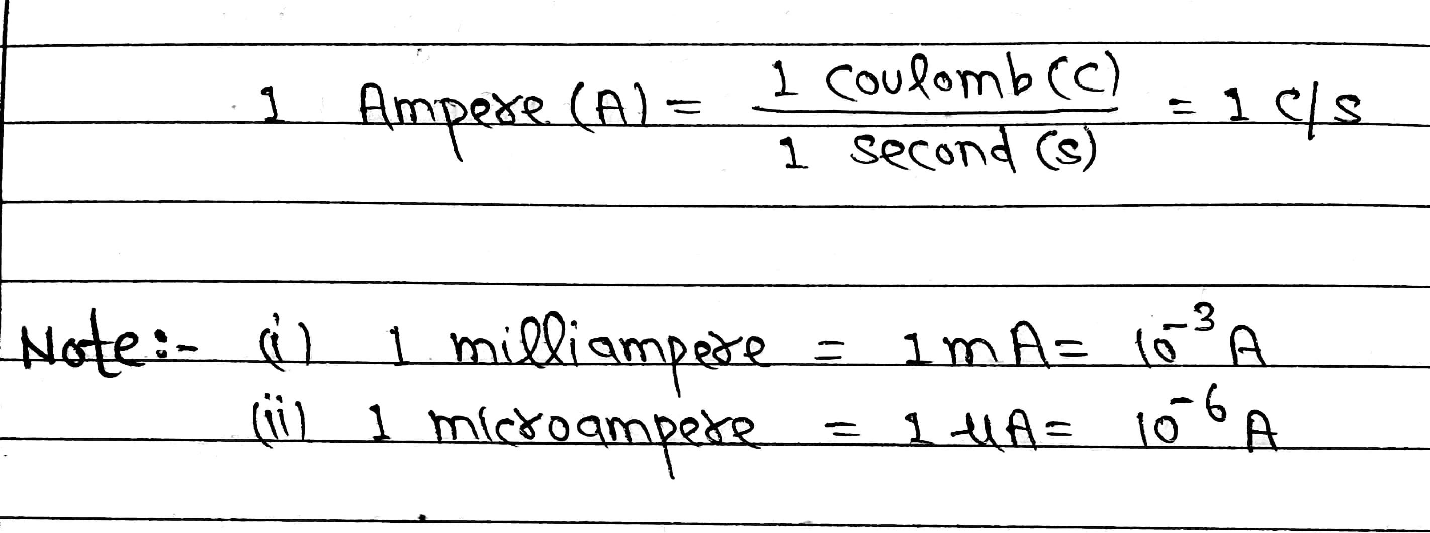 It is defined as the rate of flow of electric charges through any cross section of a conductor. It is denoted by I.