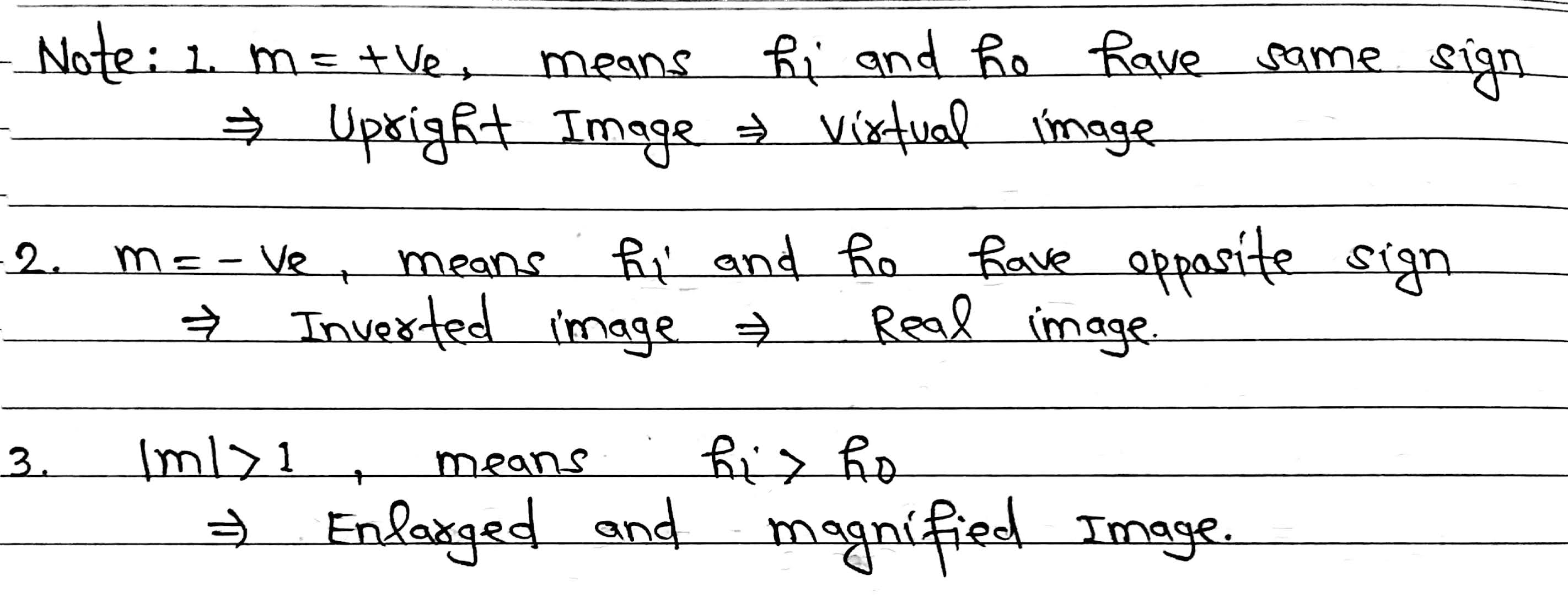 Here we will use hᵢ and h₀ with sign. Height above principal axis is positive and below negative.