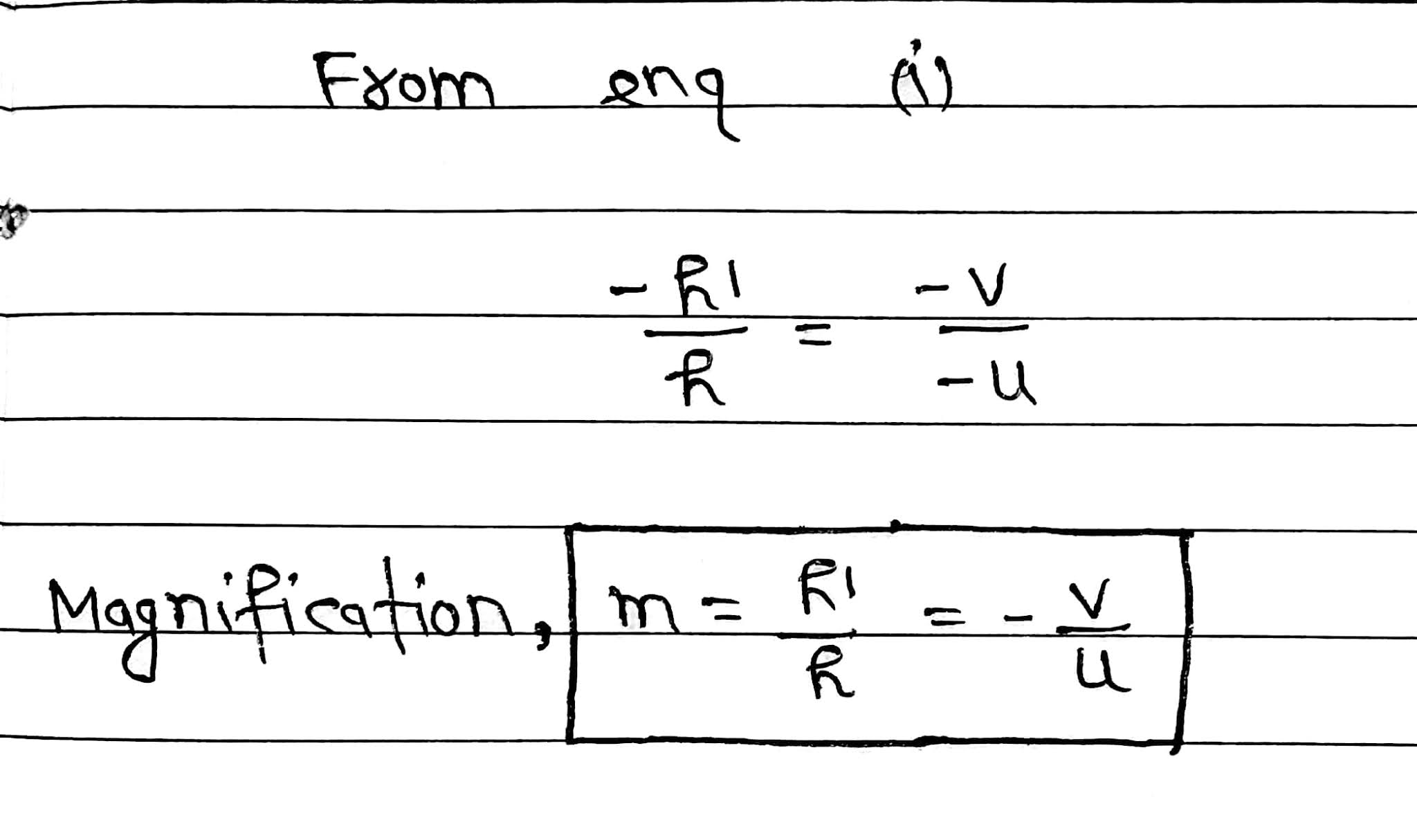The ratio of the height of the image(h´) formed by a spherical mirror to the height of the object(h) is called the linear magnification produced by the spherical mirror.
