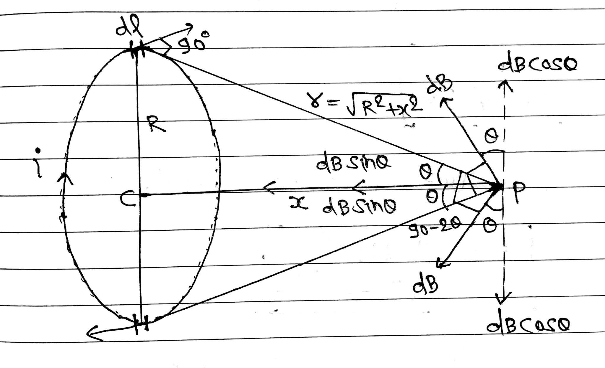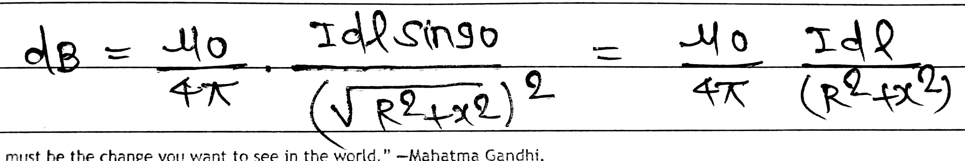 Now, Resolving dB due to current element Idl at top and bottom balance each other. The net magnetic field is obtained only by the Sine component.