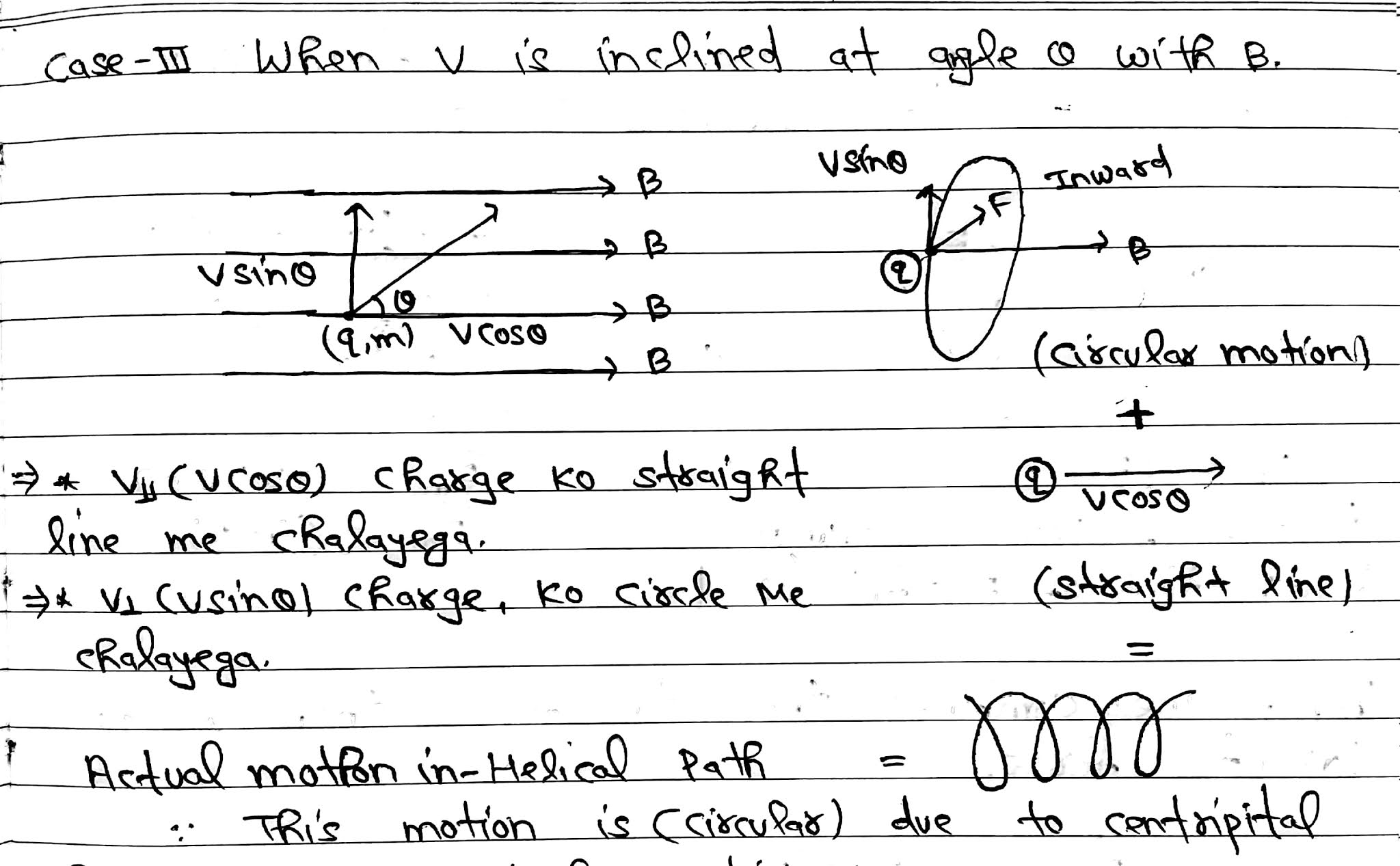 Motion(Path) of Charged Particle in Magnetic FieldBy Manoj Pandey / 14/04/2021 Chapter-4|Moving Charges and Magnetism| NCERT 12th Physics:Motion(Path) of Charged Particle in Magnetic Field: We know that in circular motion moving object motion will be balance by centripetal force. Some Important Concept:Related