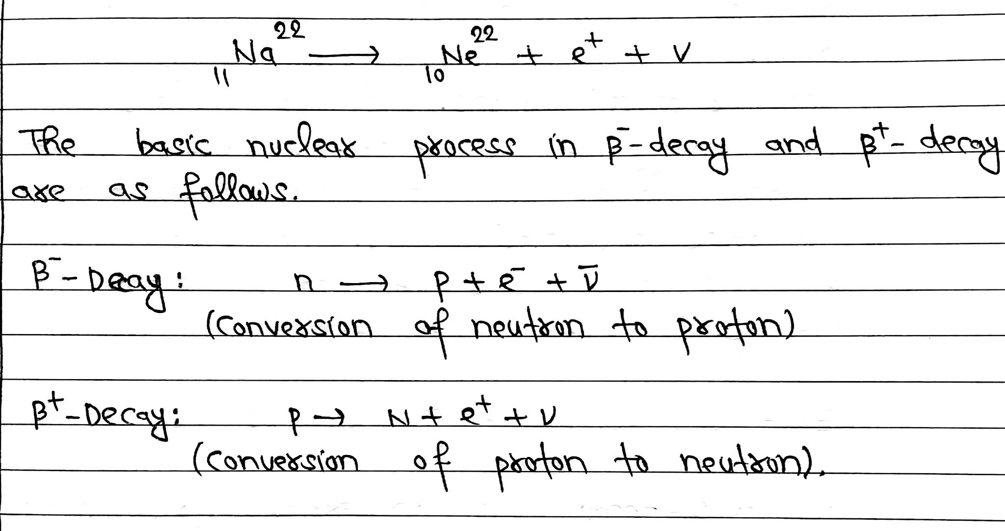 The emission of electron (β⁻-decay) is accompanied by the emission of antineutrino(v⁻) and emission of positron(β⁺-decay) is accompanied by neutrino(v).