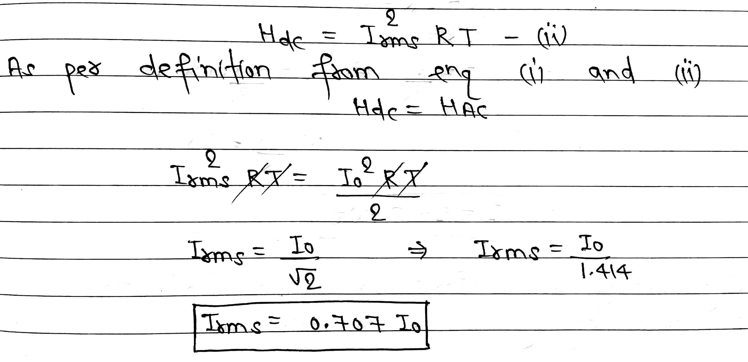 It is defined as the value of AC over a complete cycle which would generate same amount of heat in a given register that is generated by steady(DC) current in the same register and in the same time during a complete cycle.