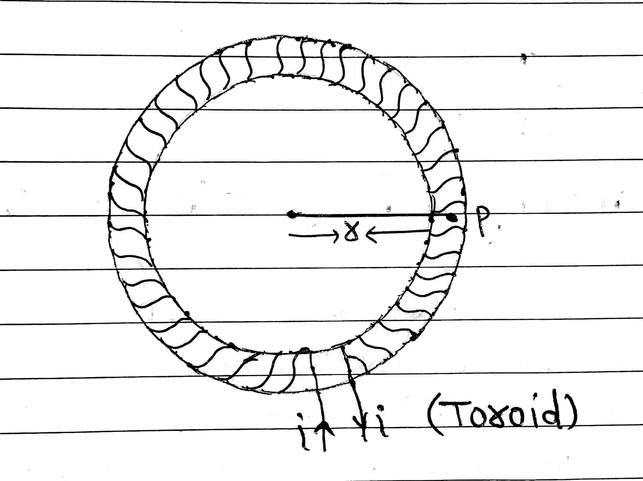 Note: Since there is no current is flowing inside or outside the toroid so there is no magnetic field (outside or inside).